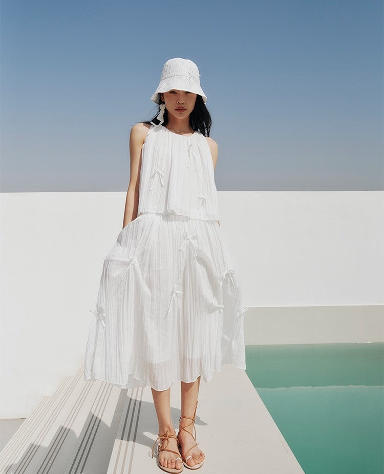 Bowknot pleated vest top