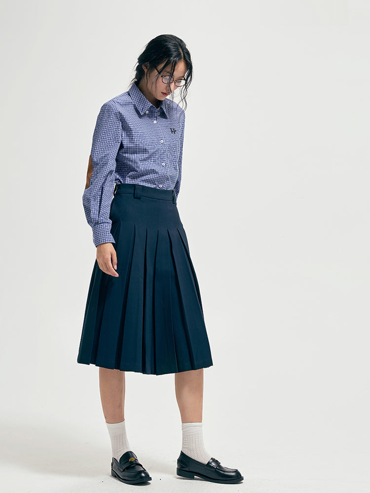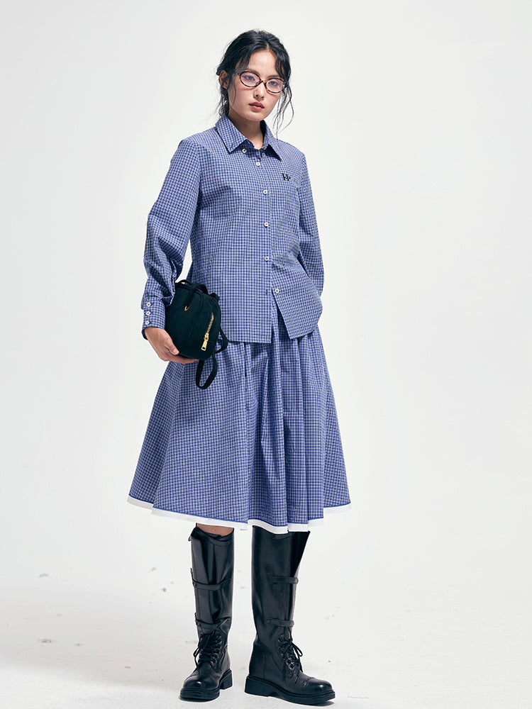 Embroidery plaid patchwork shirt