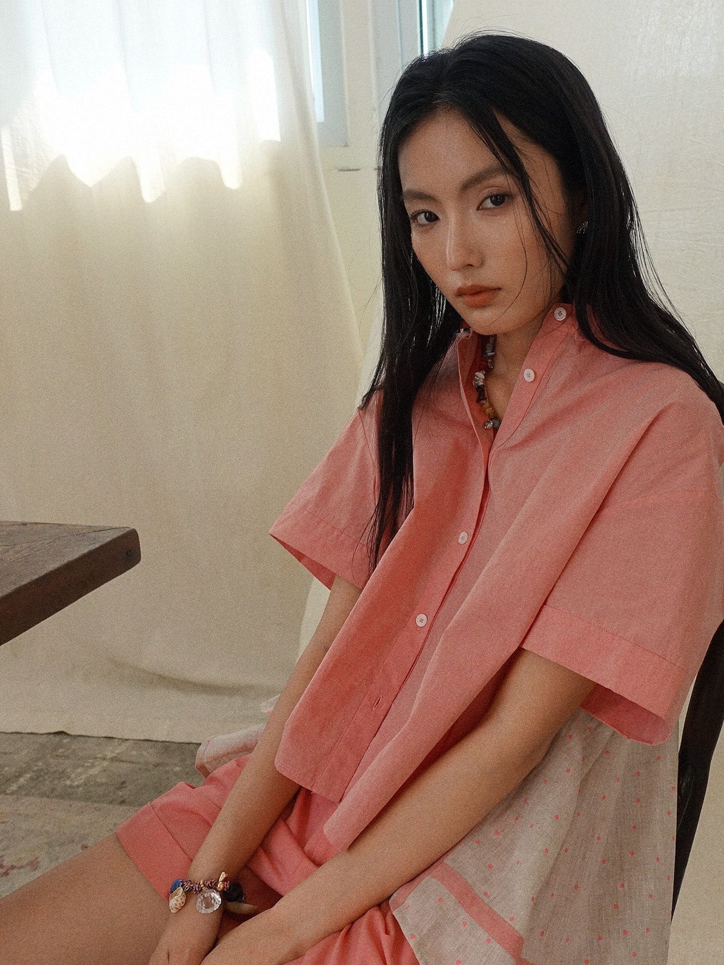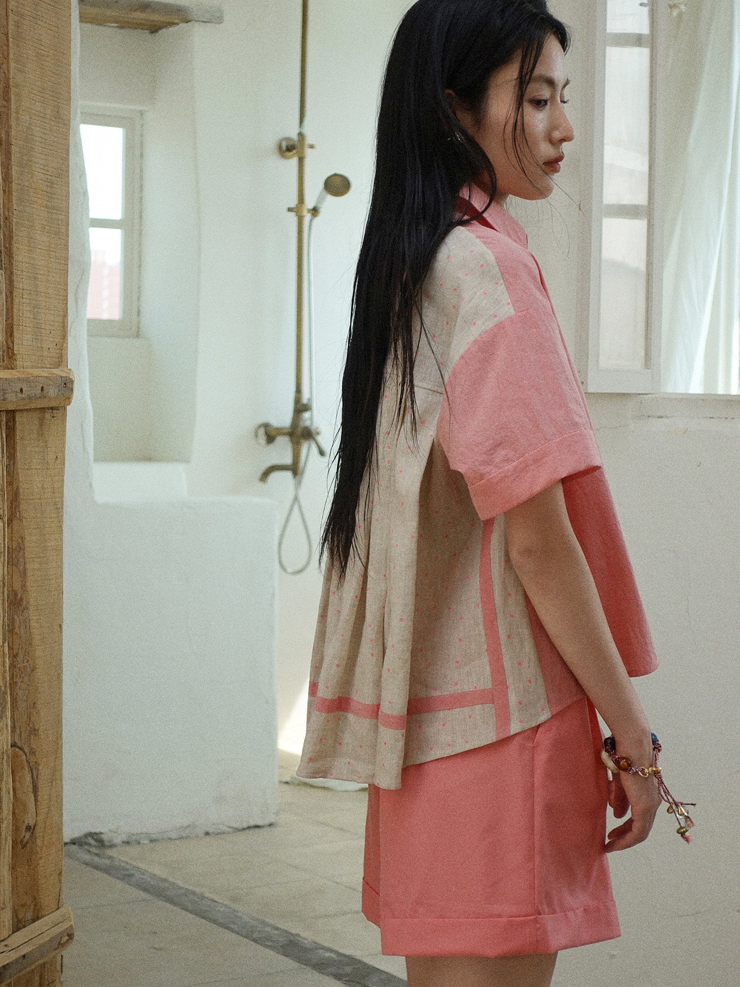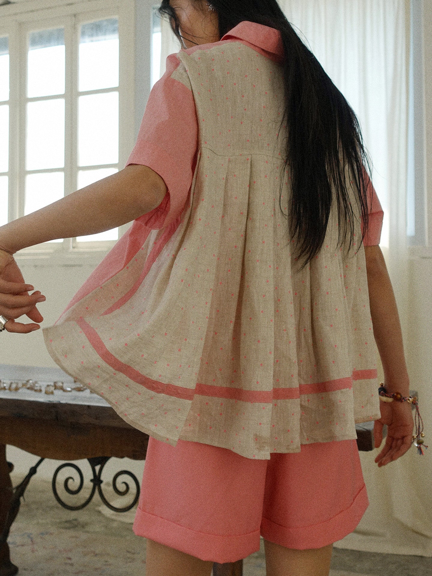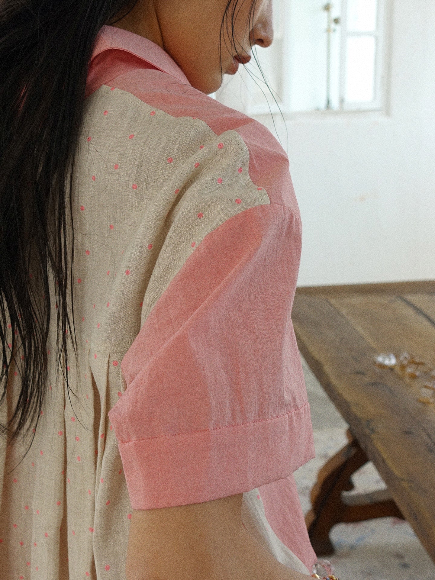 Howl studio linen cotton polka dots patchwork shirt