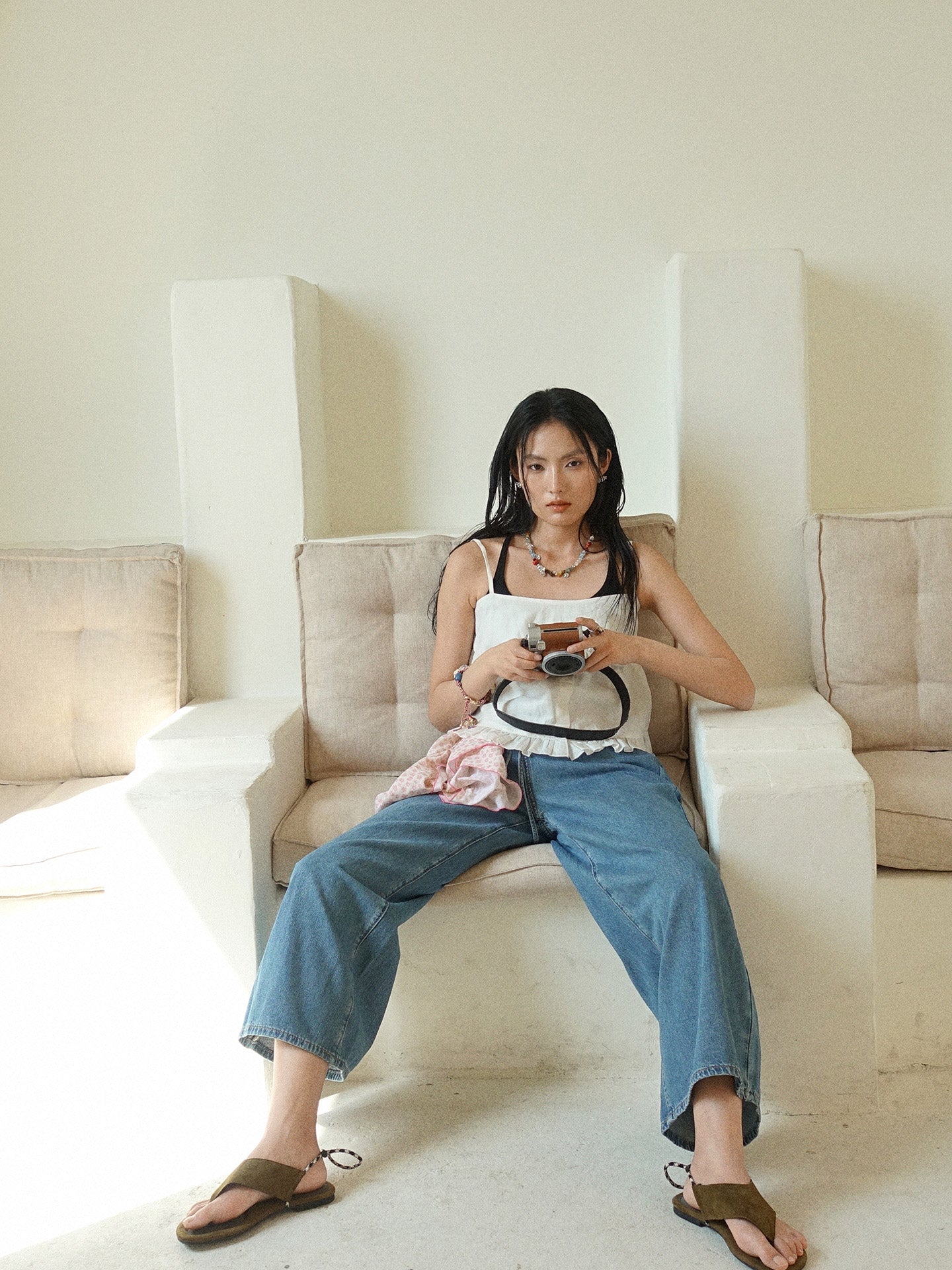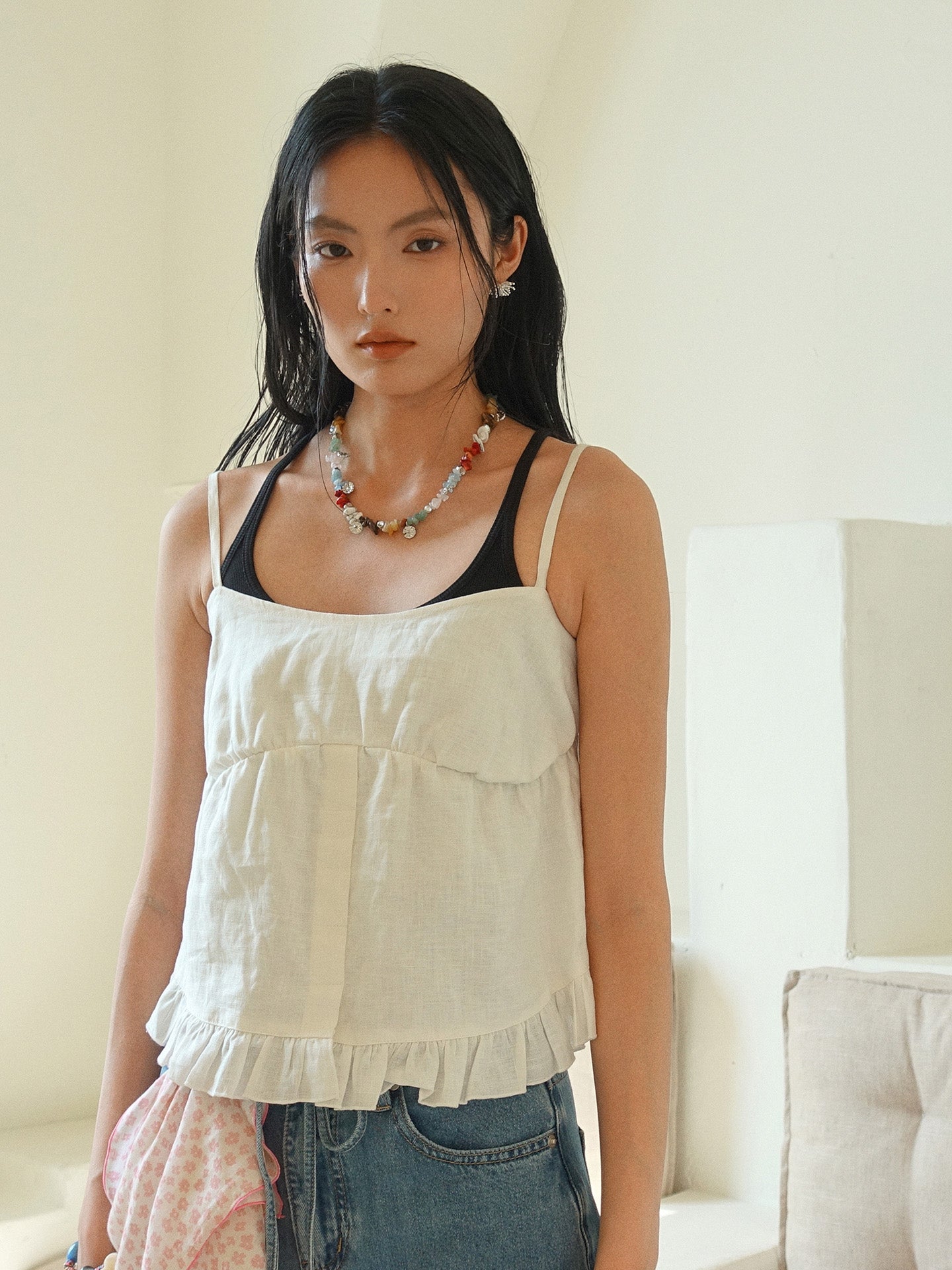 Howl studio linen ruffles vest (adjustable)