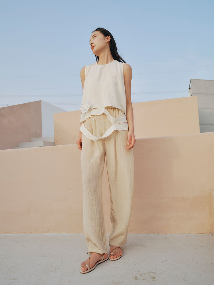 Textured wide-leg pants